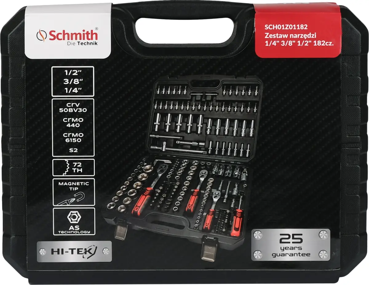 SCHMITH KOMPLET NARZĘDZI 1/4″ + 3/8″ + 1/2″ 182 CZ. SCH01Z01182