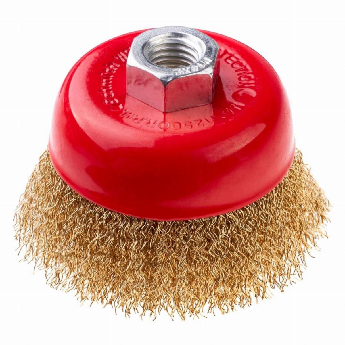 Szczotka doczołowa przeznaczona do szlifierek kątowych z gwintem M14. Wykonana z falowanego drutu mosiądzowanego, zapewnia skuteczne czyszczenie powierzchni metalowych oraz usuwanie rdzy, farby i zendry.