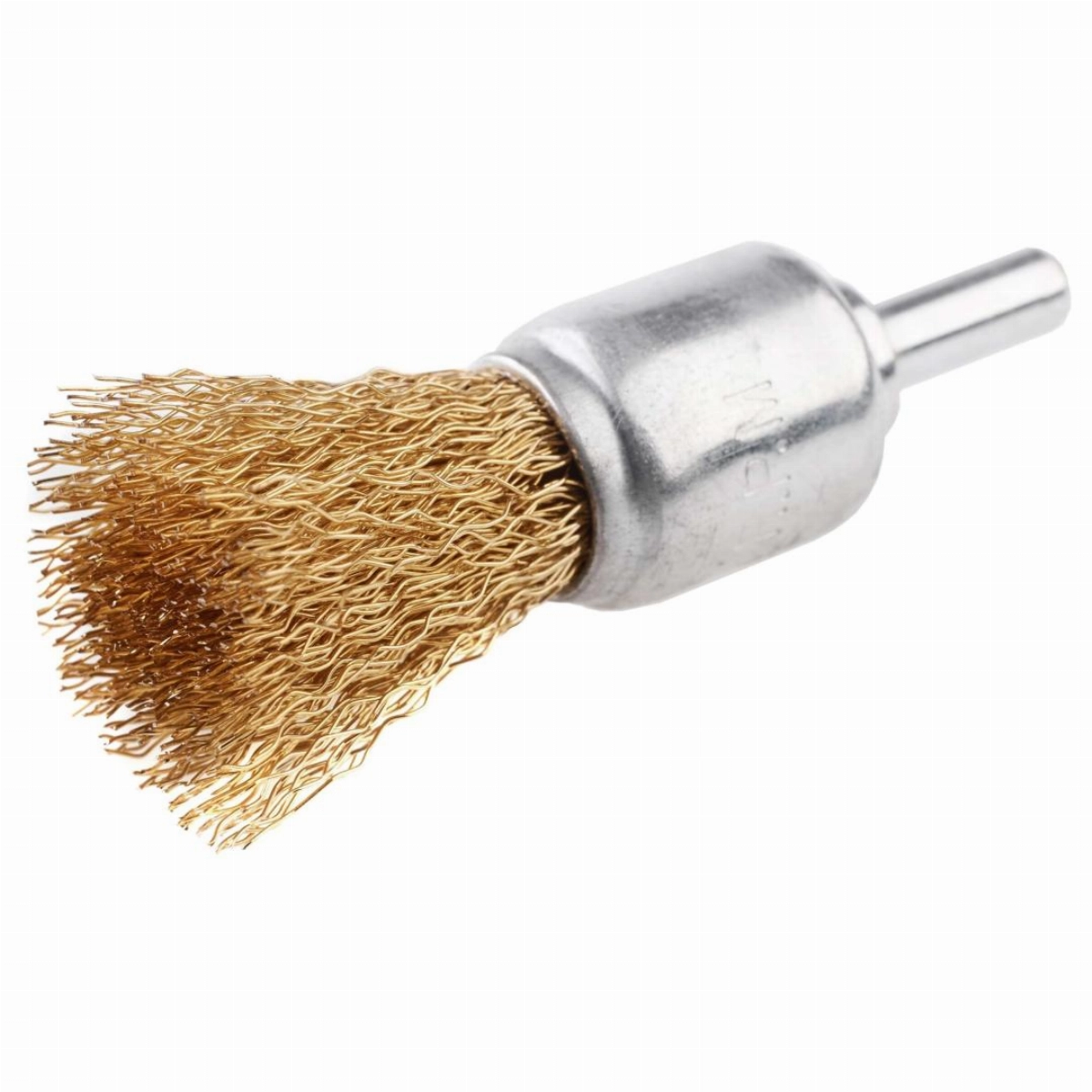Szczotka pędzelkowa przeznaczona do prac czyszczących z użyciem elektronarzędzi. Wykonana z falowanego, mosiądzowanego drutu, który zapewnia skuteczne usuwanie rdzy, farby, zendry oraz innych zanieczyszczeń z powierzchni metalowych.