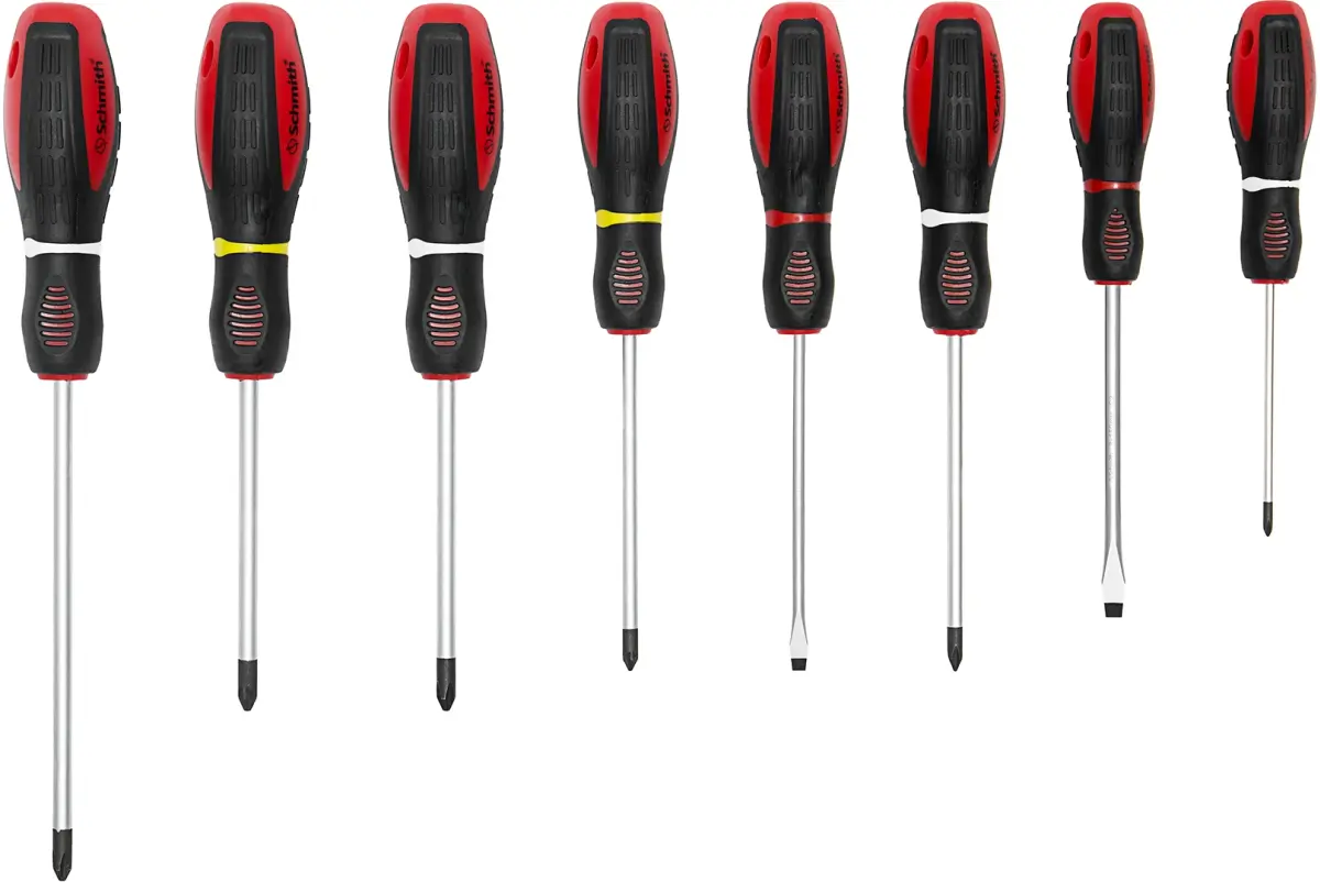 Przedmiotem sprzedaży jest zestaw wkrętaków marki Schmith, składający się z 8 elementów, model SCH01S03008, przeznaczony do prac montażowych i serwisowych.